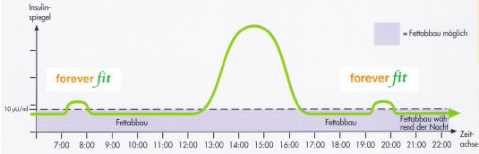 Insulinausschüttung. Dadurch wird der Körper in die Lage versetzt, über viele Stunden am Tag und in der Nacht Fett abzubauen.